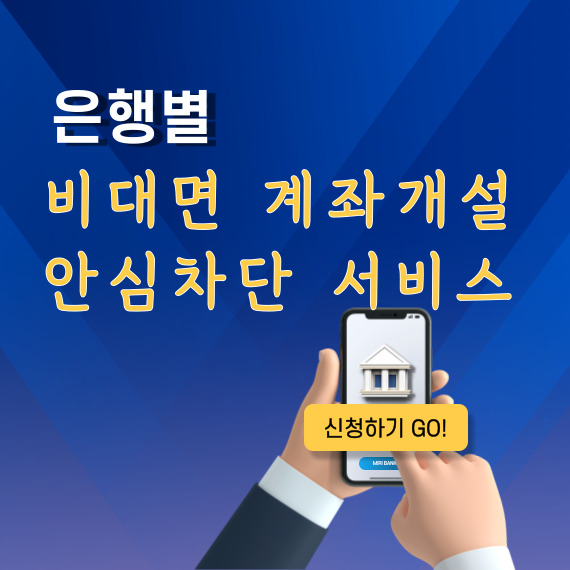 그러나 정작 일반 시민들은 본 서비스에 대해 정보가 없거나 알아도 어떻게 신청해야 하는지 알지 못하는 경우가 있어서 각 은행별 비대면 계좌개설 안심차단 서비스를 어떻게 신청하는지 알려드리겠습니다.
